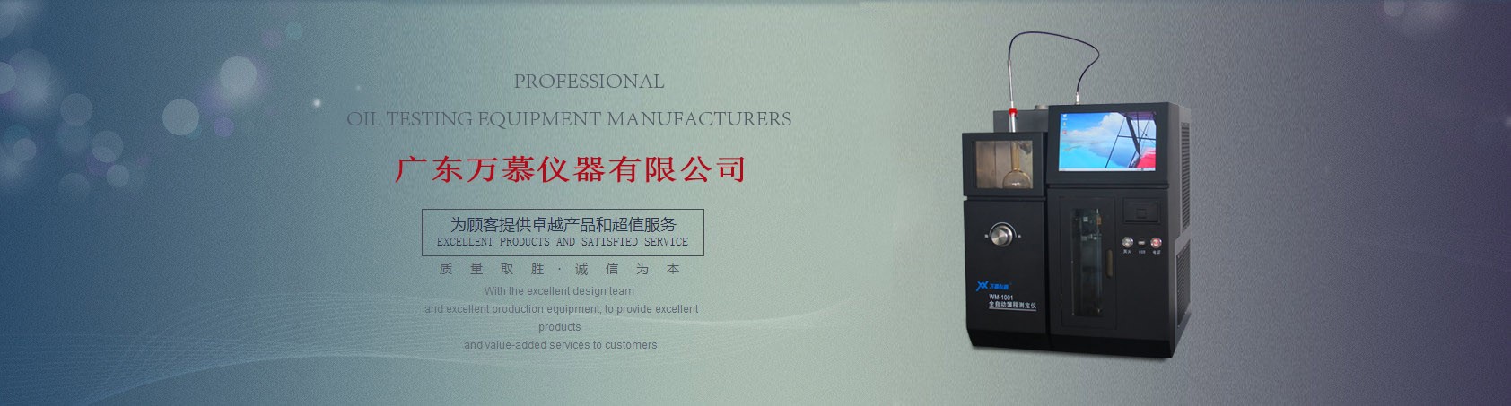 廣東萬慕儀器有限公司是一家專業從事分析儀器儀表的研發、制造、銷售和服務及技術咨詢的高新技術企業。產品廣泛應用于電力、石化、造紙、制藥、化工、冶金、環保等領域,公司總部坐落于高科技企業云集的廣州黃埔區,公司自成立以來一直秉承“品質、專業、誠信、熱忱”的經營理念,致力于打造滿足客戶全方位需求的精準、方便、迅捷、可靠的儀器儀表企業。公司先后通過高新技術企業評審和ISO90001等認證,并在各個環節嚴格執行該標準。 公司注重高科技研發團隊的建設,凝聚了一支多年從事油品檢測設備的研發團隊和售后服務團隊,保證了產品質量的穩定性和售后服務的專業性,公司擁有豐富的項目實施經驗和技術過硬的售后服務團隊,可以為用戶提供全面的技術解決方案。公司始終堅持以市場和用戶需求為導向,以完善的管理體系和質量保證體...